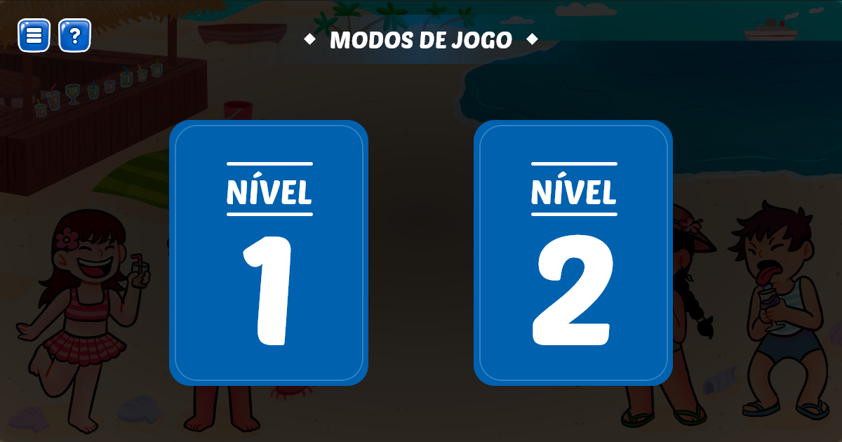 Independente do nível escolhido (1 ou 2), o jogo inicia com clientes fazendo pedidos mais FÁCEIS; somente quando o usuário acertar 2 fáceis, o jogo manda um pedido MÉDIO. Ao acertar 4 médios, o jogo passa a enviar pedidos DIFÍCEIS. O jogo é
